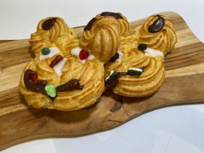 Pose med 2 stk lyse lagkagebunde, med en masse godt fyld på, smager de forrygende!